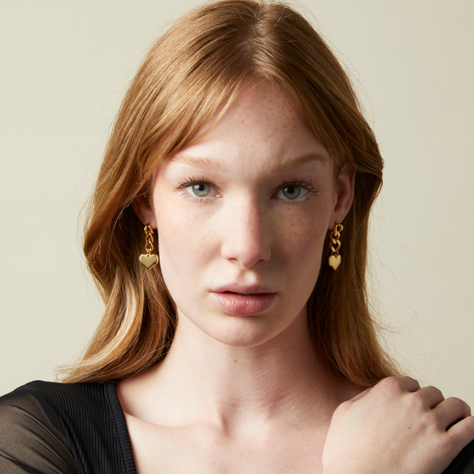 KBoutiques Chain Hearts Earrings are a sophisticated and contemporary take on the classic heart design. Featuring delicate gold chain links and heart-shaped charms, these earrings add a bold, stylish flair to your look. The mix of elegant gold with chain elements creates a modern, edgy aesthetic perfect for any occasion, from casual outings to more formal events.
