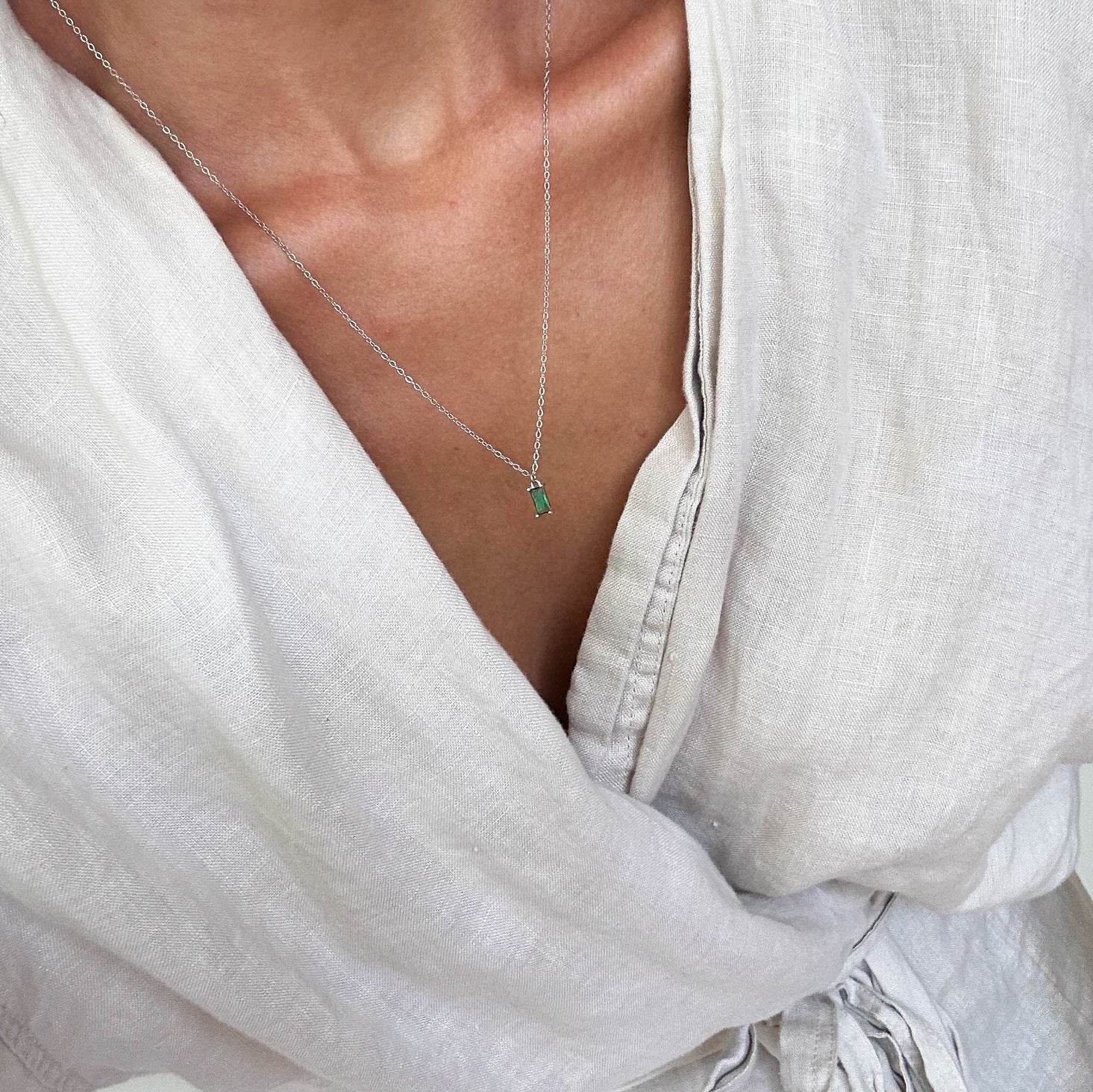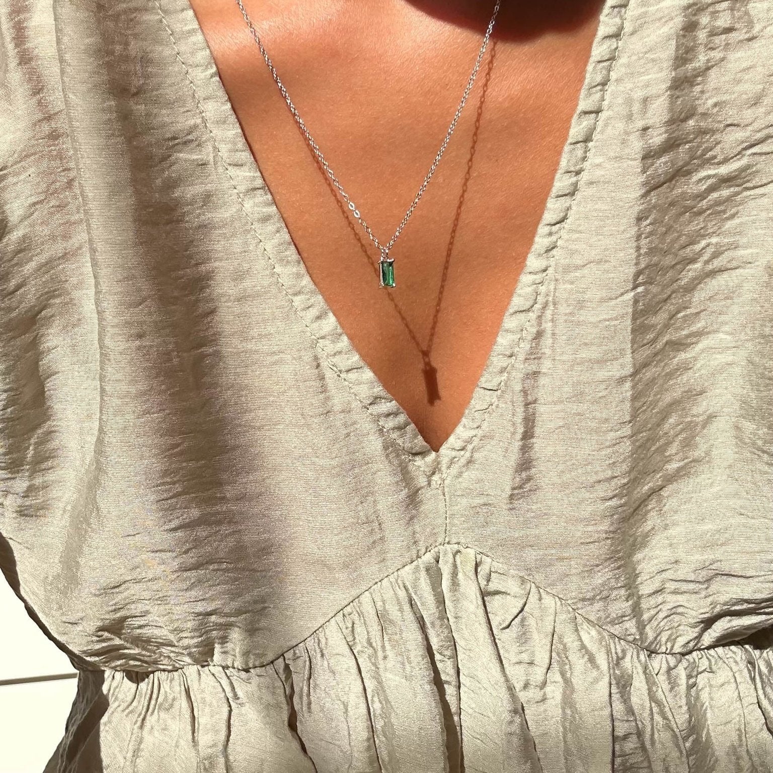 The KBoutiques Rectangular Zircon Necklace features a rectangular zircon pendant in a captivating green hue. Known for its brilliant sparkle and timeless elegance, the zircon gemstone adds a sophisticated touch to this necklace, making it perfect for both special occasions and everyday wear. The green zircon is a symbol of growth, renewal, and prosperity, making this necklace not only a beautiful accessory but also a meaningful one.