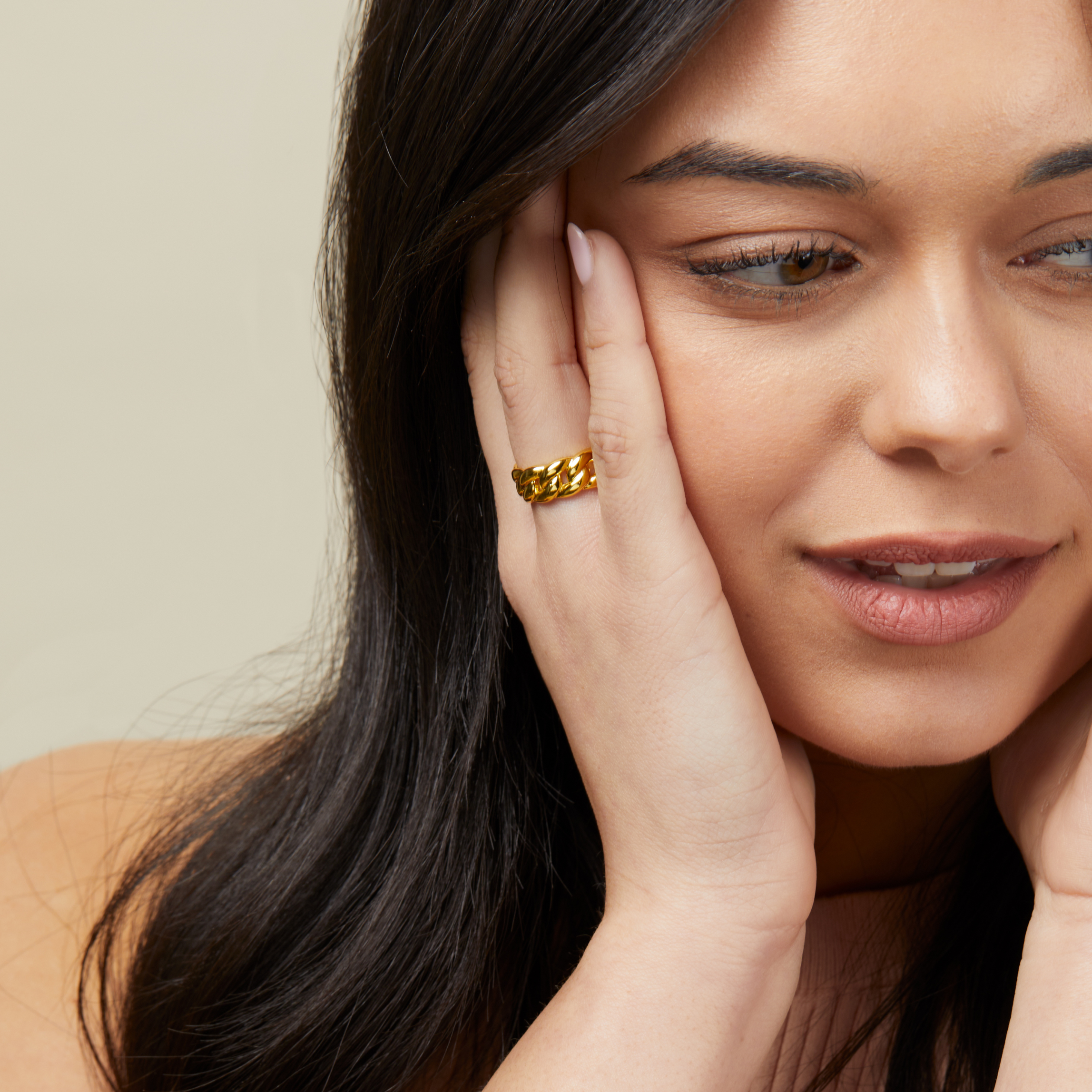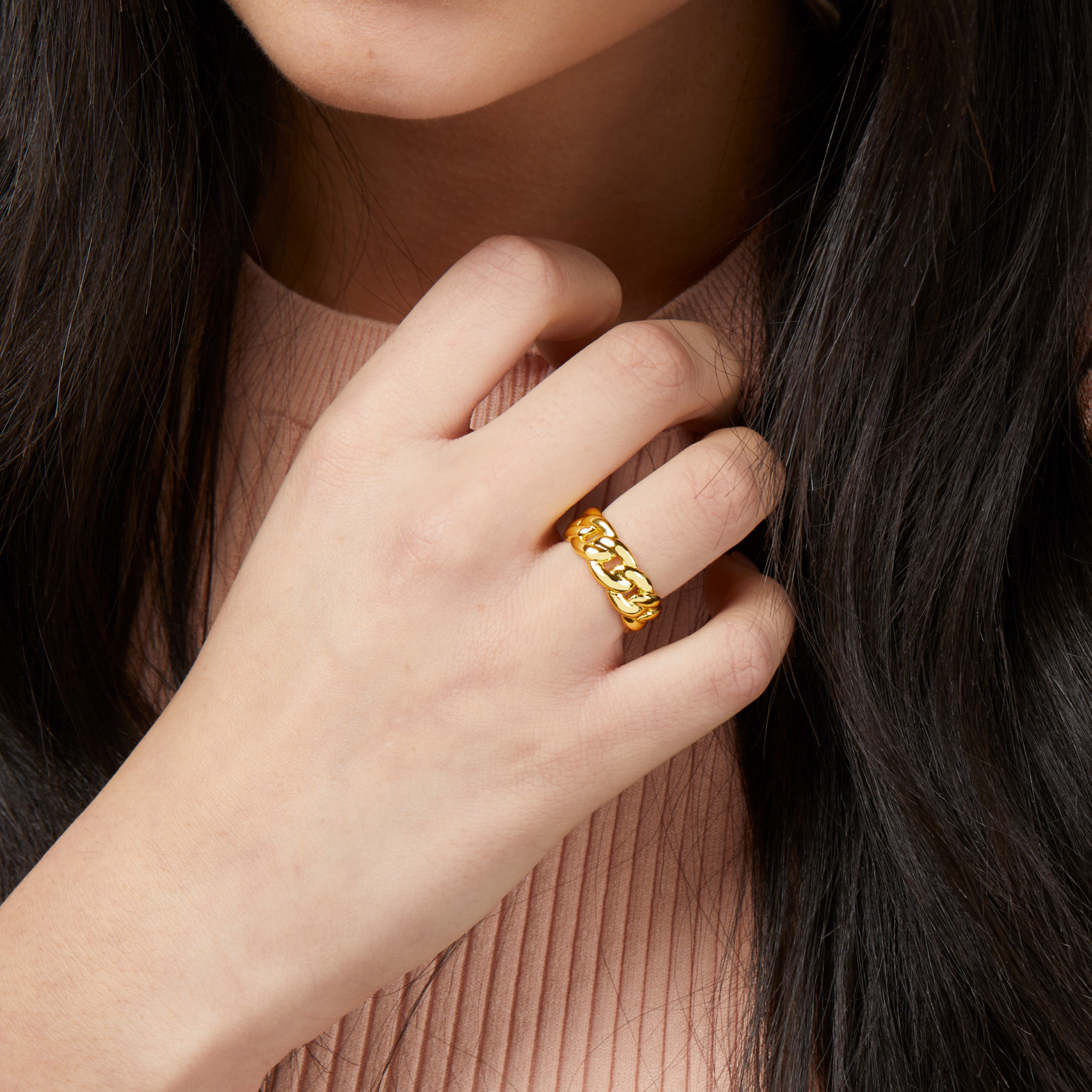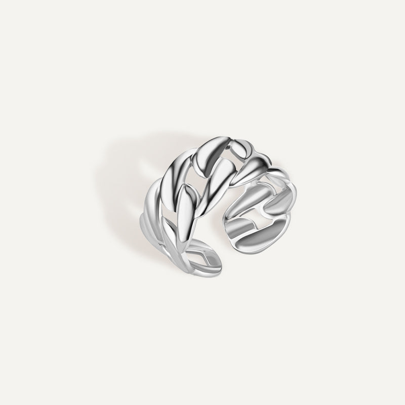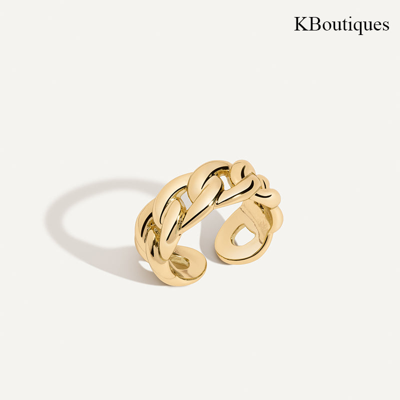 The KBoutiques Chain Openable Ring features a sleek chain link design that connects the two ends of the ring, allowing it to be adjusted for a perfect fit. The ring's openable structure adds a modern twist to its minimalist design, while the chain detail adds a subtle hint of edgy sophistication. This ring is designed to be functional and stylish, offering versatility for everyday wear or creating a bold statement.