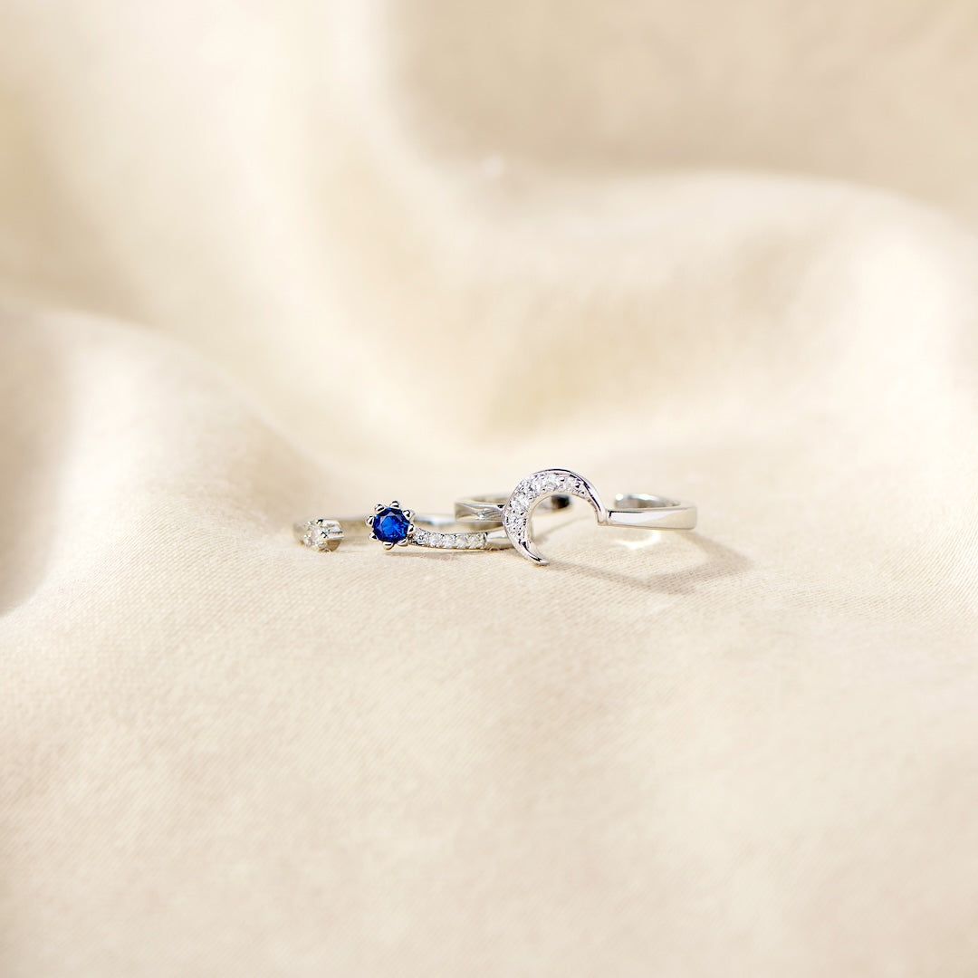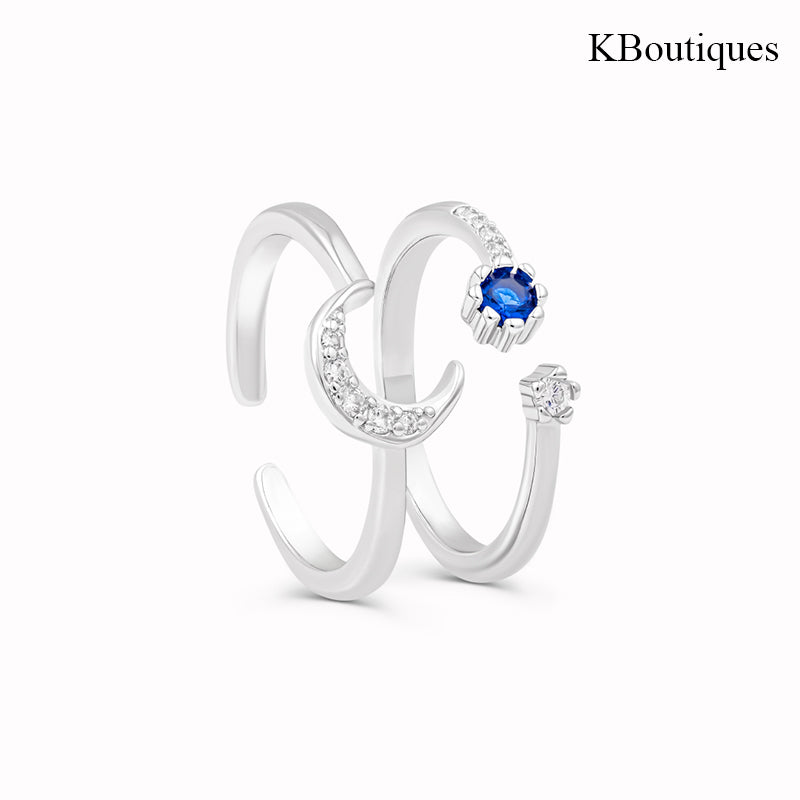 KBoutiques Moon Star Stackable Ring is a dazzling and whimsical set of two stackable rings, featuring a moon and a star, both adorned with sparkling zircon stones. These rings can be worn together or separately, offering a versatile and personalized way to express your love for celestial designs. The adjustable open-ring structure ensures a comfortable fit, while the stackable design allows for a fun and trendy way to accessorize.