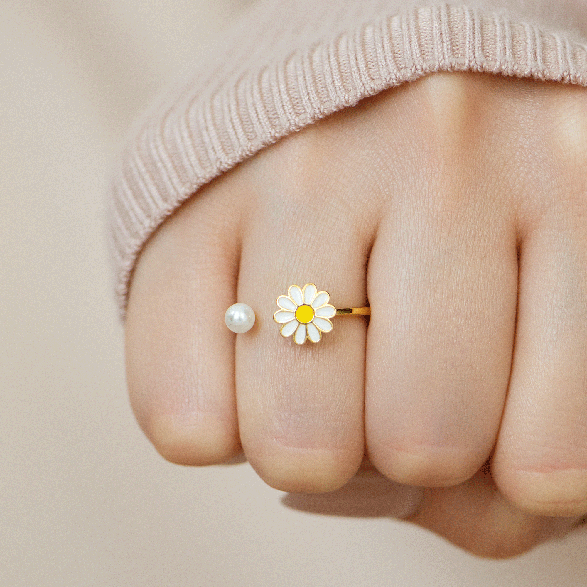 KBoutiques Rotatable Flower Ring is a beautifully designed open ring that combines the natural beauty of a flower with a functional stress-relieving feature. The flower centerpiece is rotatable, allowing you to spin it as a way to relieve stress. This interactive ring is perfect for those who appreciate both style and the benefits of a fidgeting tool, making it a unique addition to your jewelry collection.