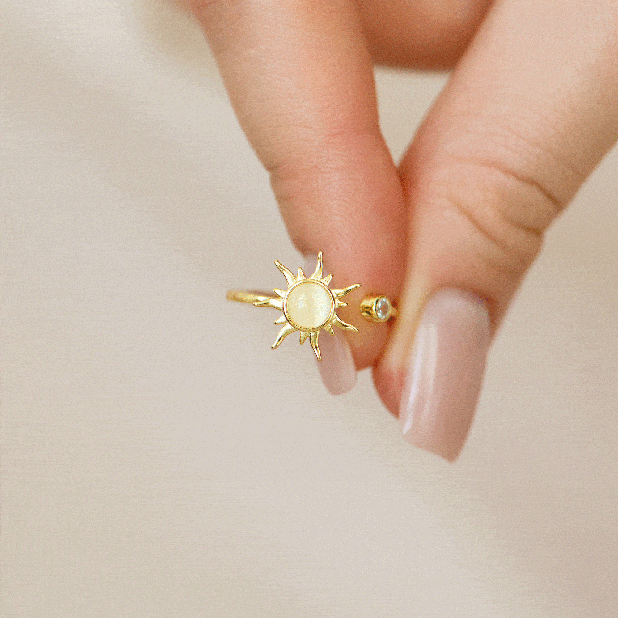 The KBoutiques Rotatable Sun Ring is a beautiful and functional accessory that combines a striking sun motif with a rotatable design for stress relief. The central sun element spins smoothly, providing a calming effect that’s perfect for reducing anxiety or simply keeping your hands engaged. The open-ring structure allows for a comfortable fit, making this ring ideal for those who appreciate both fashion and function.