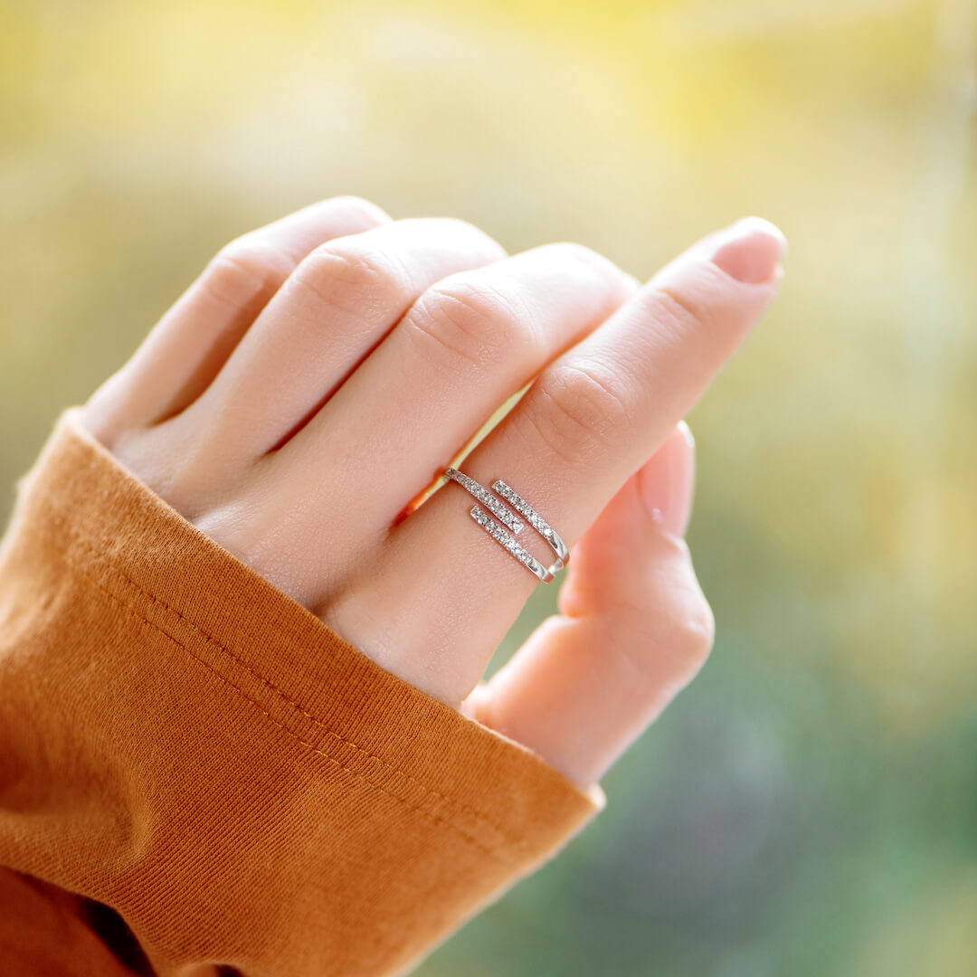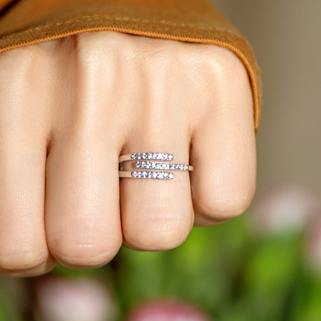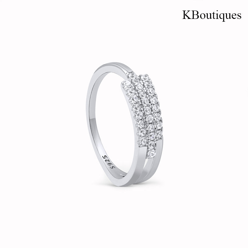 KBoutiques Three-Layer Zircon Ring is an elegant open-ring design featuring three layers of brilliant zircon stones. Its striking yet subtle sparkle makes it a versatile statement piece, perfect for adding a touch of luxury to any ensemble. Whether worn alone or stacked with other rings, this piece is sure to stand out with its timeless beauty and glimmering finish.