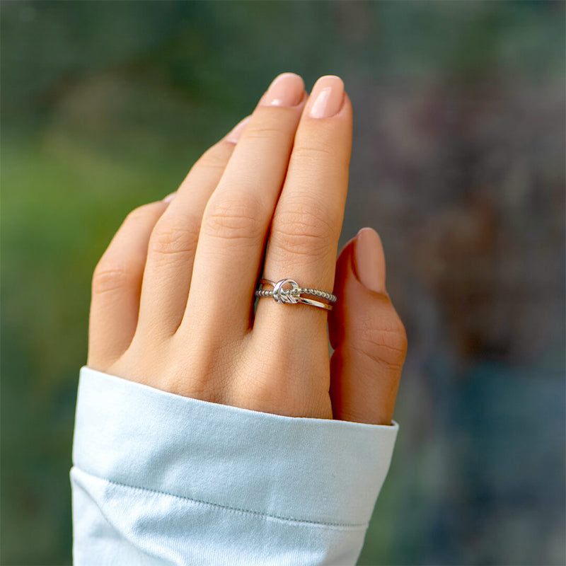 KBoutiques Cross Knot Ring features a distinctive crossed knot design, creating a look that is both elegant and meaningful. The knot symbolizes connection, love, and unity, making this piece perfect for those who appreciate jewelry with symbolic significance. Its open-end design allows for an adjustable fit, making it suitable for any finger size and adding to its versatility.